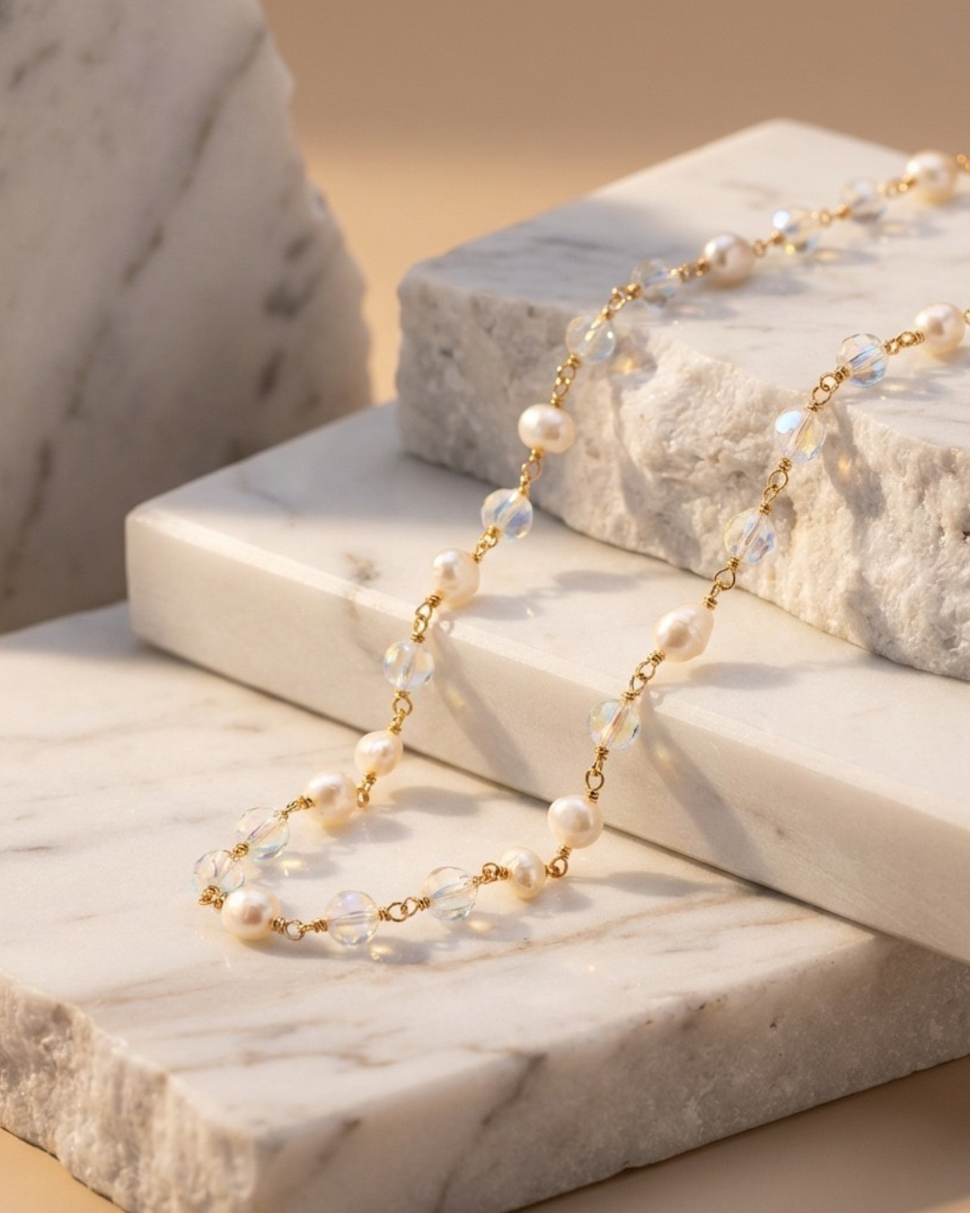 Collar de cristales y Perlas naturales que aporta elegancia y personalidad.