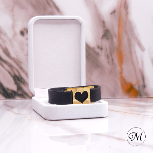 Pulsera hecha a mano con cuero y placa de bronce